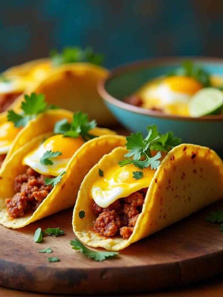 Breakfast Tacos with Chorizo, Eggs, and Cheese