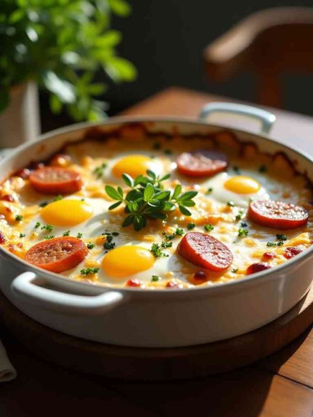 Breakfast Casserole with Eggs, Sausage, and Cheese