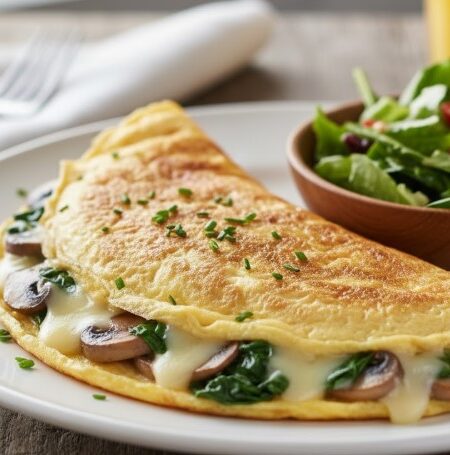 Omelette with Mushrooms, Spinach, and Swiss Cheese