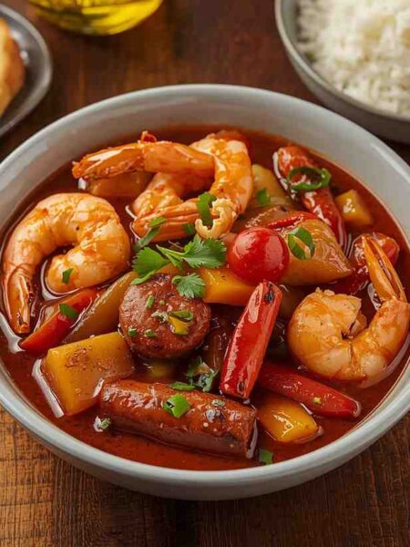 Seafood Gumbo with Shrimp, Crab, and Sausage