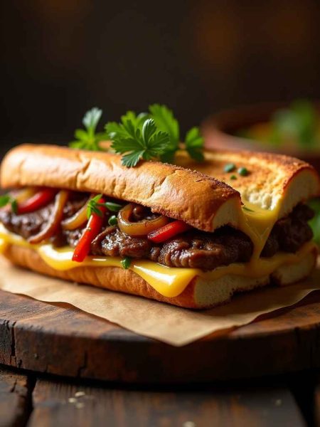 Philly Cheesesteak Sandwich with Onions and Peppers