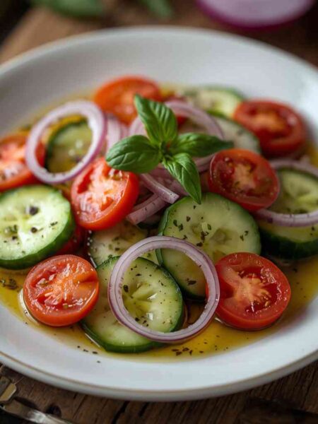 Cucumber and Tomato Salad with Red Onion and Olive Oil