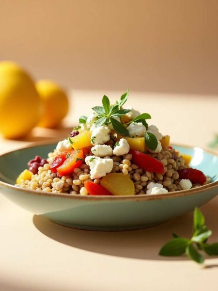 Farro Salad with Roasted Vegetables and Feta Cheese