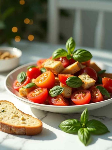 Panzanella Salad with Bread, Tomatoes, and Basil