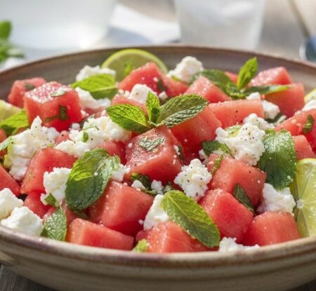 Watermelon, Feta, and Mint Salad with Lime Dressing
