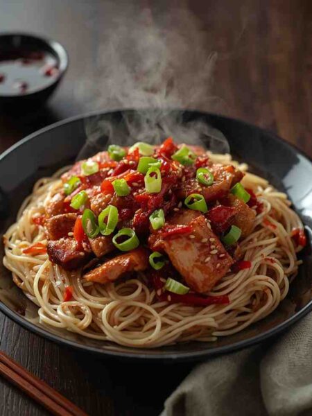 Spicy Szechuan Pork with Rice Noodles