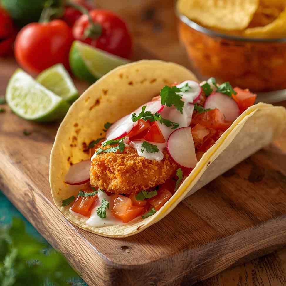 Step 6: Assemble the Tacos : Place a few strips of crispy fish in each tortilla. Top with shredded cabbage, diced tomato, red onion, and cilantro. Drizzle generously with the creamy lime sauce. Serve immediately with lime wedges on the side.