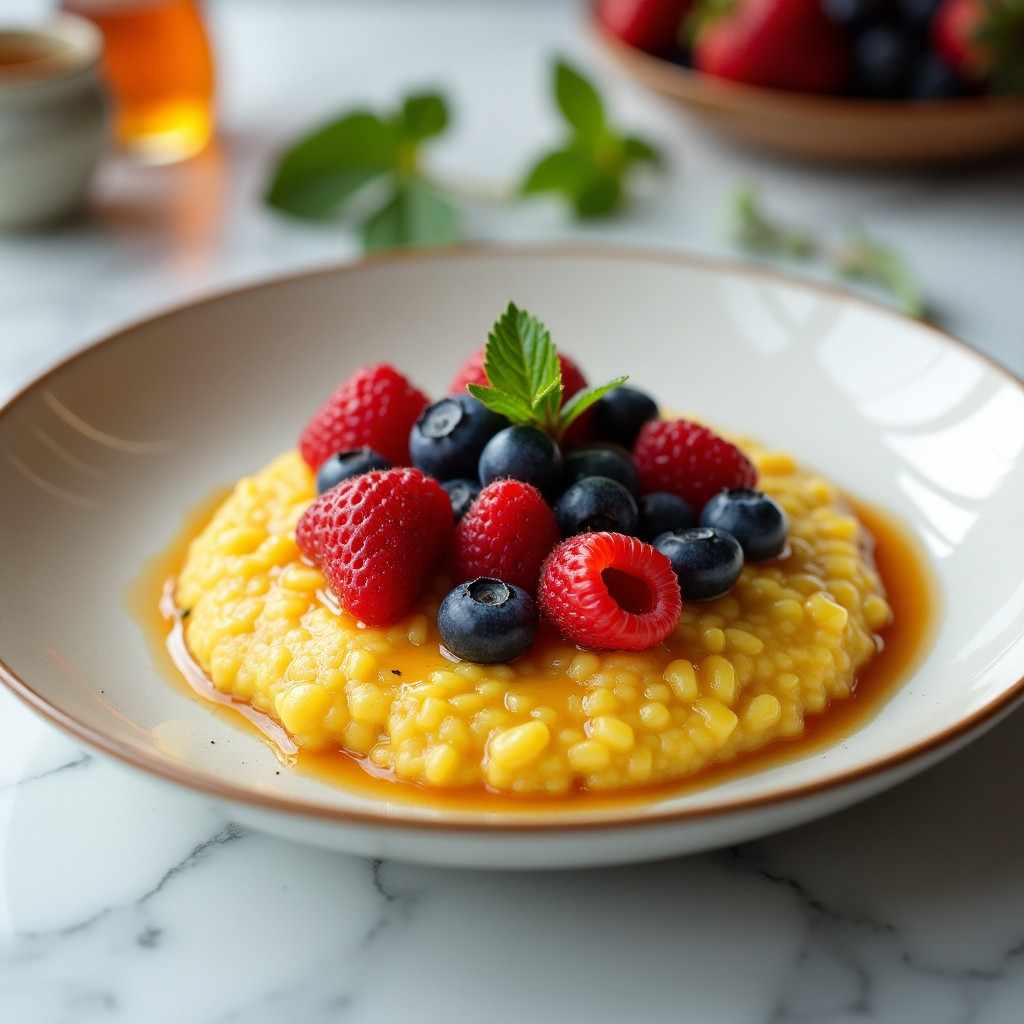 This breakfast version is smooth, lightly sweet, and bursting with freshness from seasonal berries. The contrast between the creamy polenta, juicy berries, and floral honey creates a balanced and nourishing meal that feels indulgent yet remains simple and nutritious.