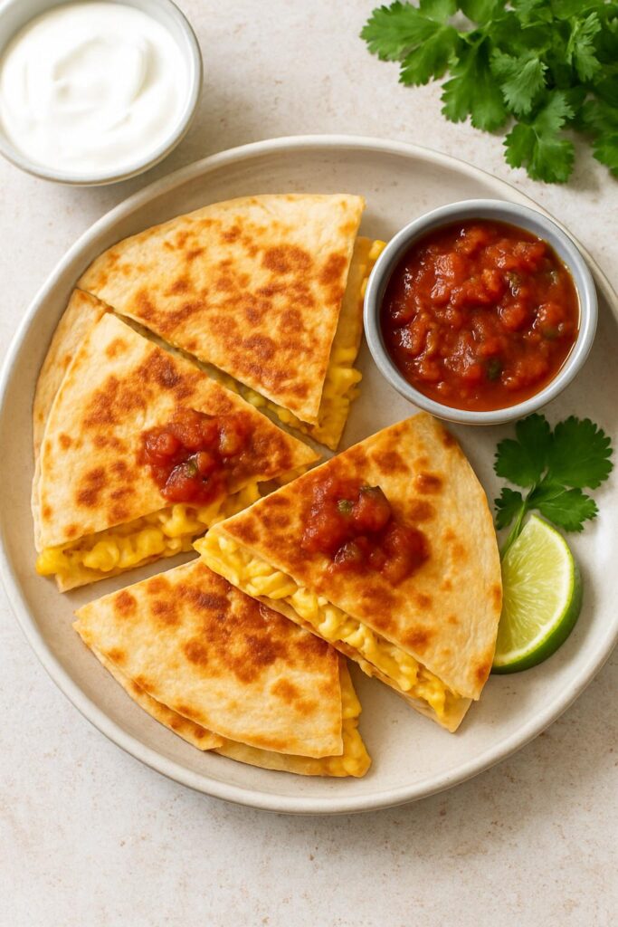 Breakfast Quesadilla with Eggs, Cheese, and Salsa