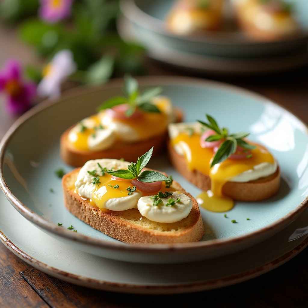 Goat Cheese and Honey Crostini is an elegant and flavorful appetizer that combines creamy, tangy goat cheese with the natural sweetness of honey, served atop crisp, toasted baguette slices. This simple yet sophisticated bite-sized treat is perfect for entertaining, cocktail parties, or as a light snack. The contrast of textures—the crunchy crostini, the smooth goat cheese, and the sticky drizzle of honey—creates a delightful taste experience that is both comforting and gourmet.