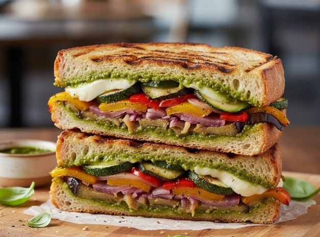 Grilled Vegetable Panini with Pesto Sauce