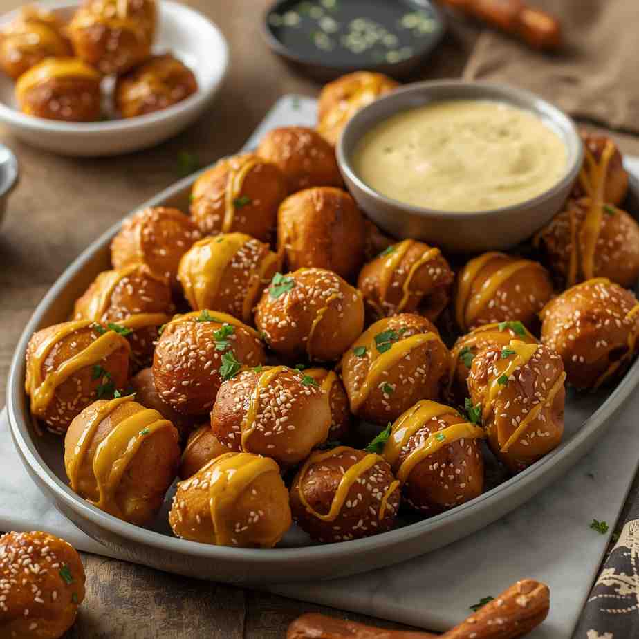 6. Step 6: Coat in Honey Mustard : Mix melted butter, honey, and mustard. Toss warm pretzel bites until coated and glossy.