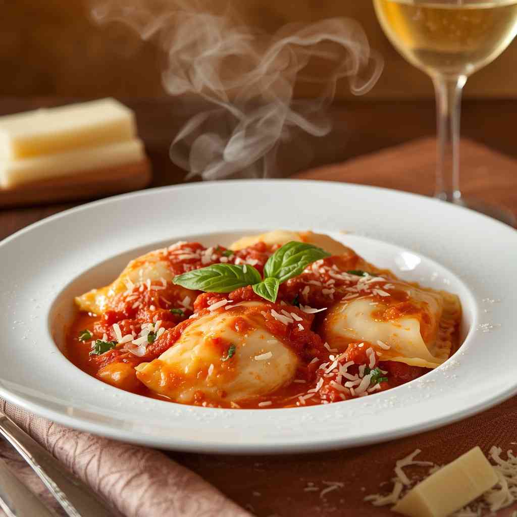 Step 4: Combine : Gently add ravioli to the sauce and coat evenly.