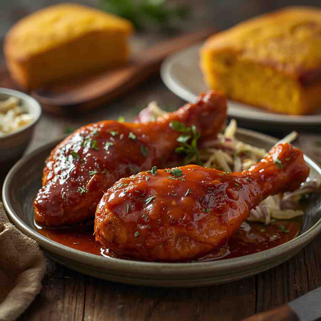 Few meals bring the soul-warming satisfaction of classic barbecue like oven-baked BBQ chicken legs paired with soft, golden cornbread. This recipe captures the smoky, sweet, sticky charm of backyard BBQ without needing a grill.