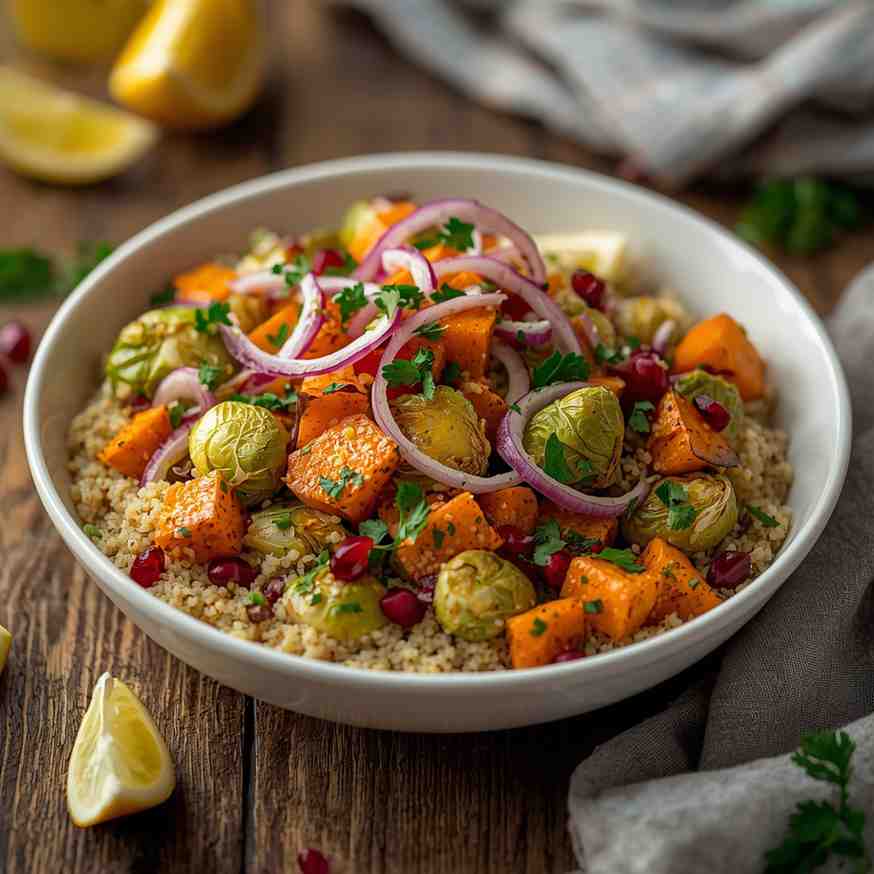 Roasted Vegetable Quinoa Salad is a wholesome, vibrant, and flavor-packed dish that celebrates simple ingredients in the most delicious way. With tender roasted vegetables, fluffy quinoa, and a bright lemon vinaigrette, this salad is both nourishing and satisfying. It’s suitable as a healthy lunch, a side dish for dinner, or even a meal-prep favorite for busy days.