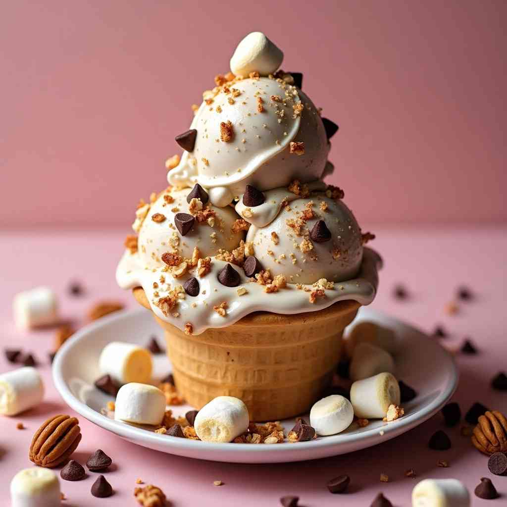 Rocky Road Ice Cream is a timeless frozen dessert that perfectly balances rich chocolate ice cream with chewy marshmallows and crunchy nuts. Every spoonful delivers a delightful mix of creamy, smooth, soft, and crunchy textures that make this flavor so iconic. Originally created as a way to lift spirits during tough times, Rocky Road has since become a beloved classic enjoyed by all ages.