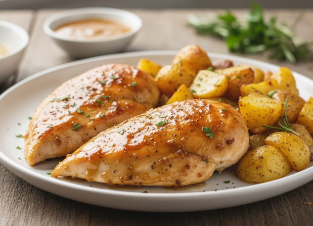 Sear the Chicken : Heat 1 tbsp olive oil in a large skillet or pan over medium-high heat. Add seasoned chicken and cook until golden brown on all sides (about 5–6 minutes). Remove and set aside.