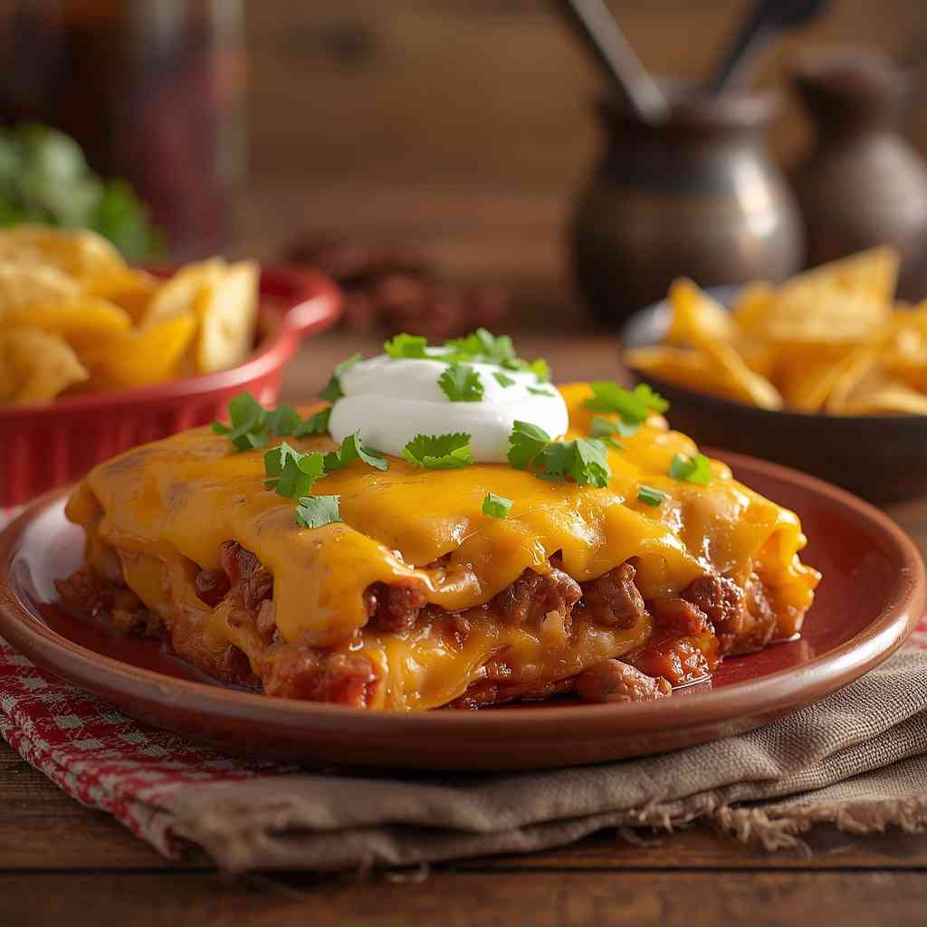 This dish delivers the irresistible flavors of a taco night with the ease of a one-pan meal. Each bite is packed with savory beef, creamy beans, melted cheese, and the crunch of tortilla chips — making it both satisfying and family-friendly.